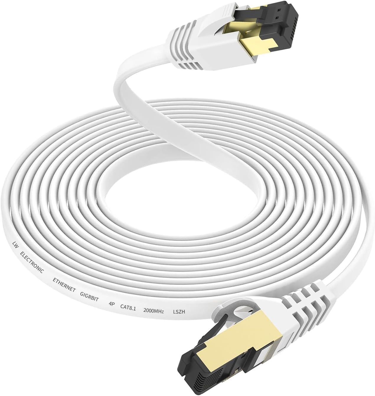 Plat 10m Câble réseau Ethernet CAT 8 LSZH à haute vitesse de 40 Gbps 2000 MHz câble de raccordement S/FTP compatible avec PS5 XBOX Switch ordinateur portable routeur modem TV RJ45