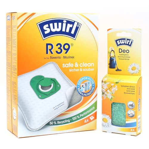 4 Sacs D'aspirateur + Billes Déodorantes Compatible avec Rowenta RO 6886EA | Compatible avec Swirl R39 - R 39 | 4 Sacs, Désodorisant, Accessoires, Pièces Détachées