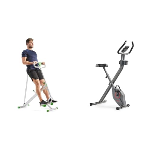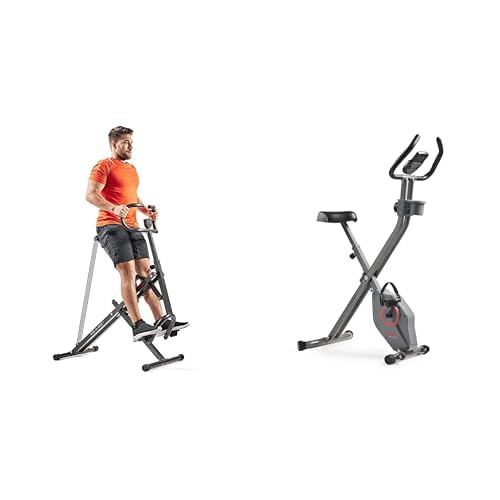 Sunny Health & Fitness Smart Compact Adjustable Rowing Machine, 12 Levels Resistance + Smart Folding X-Bike, Portable Compact Exercise Bike, Indoor, 14-Level Magnetic Resistance