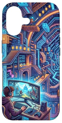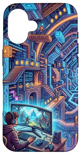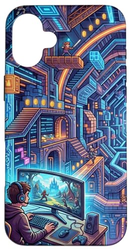 Joueur PC Cyberpunk futuriste et RPG rétro Pixel Art Fantasy Coque pour iPhone 16