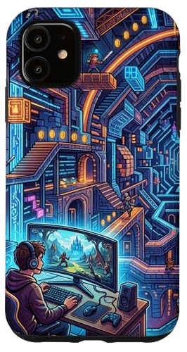Joueur PC Cyberpunk futuriste et RPG rétro Pixel Art Fantasy Coque pour iPhone 11