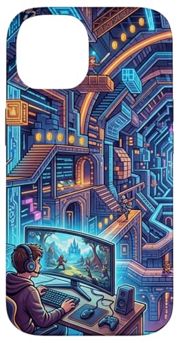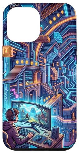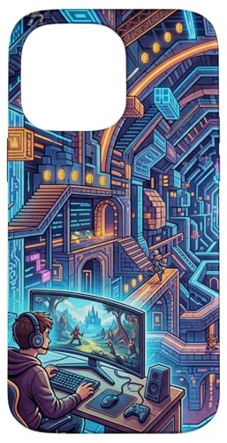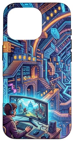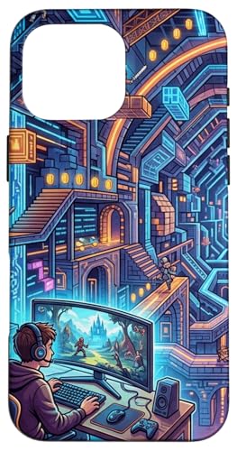 Joueur PC Cyberpunk futuriste et RPG rétro Pixel Art Fantasy Coque pour iPhone 16 Pro Max