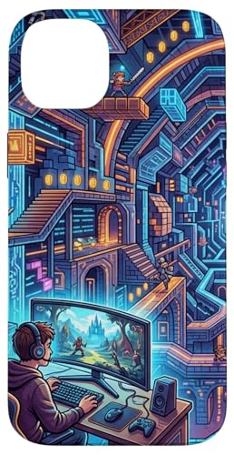 Joueur PC Cyberpunk futuriste et RPG rétro Pixel Art Fantasy Coque pour iPhone 14 Plus