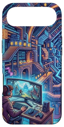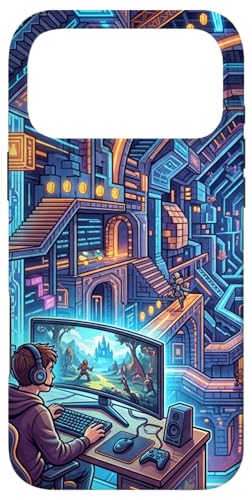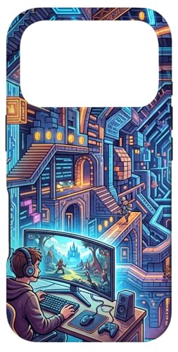 Joueur PC Cyberpunk futuriste et RPG rétro Pixel Art Fantasy Coque pour iPhone 17 Pro