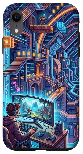 Joueur PC Cyberpunk futuriste et RPG rétro Pixel Art Fantasy Coque pour iPhone XR