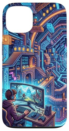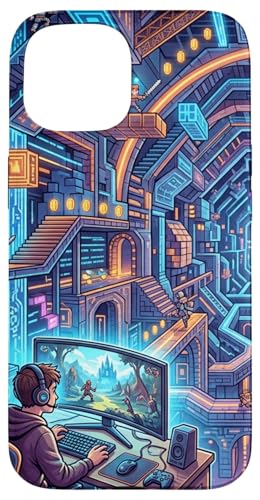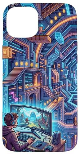 Joueur PC Cyberpunk futuriste et RPG rétro Pixel Art Fantasy Coque pour iPhone 15