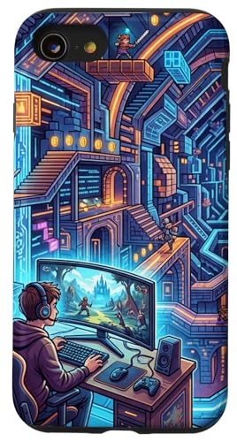 Joueur PC Cyberpunk futuriste et RPG rétro Pixel Art Fantasy Coque pour iPhone SE (2020) / 7/8