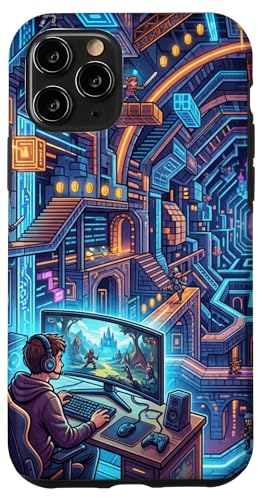 Joueur PC Cyberpunk futuriste et RPG rétro Pixel Art Fantasy Coque pour iPhone 11 Pro