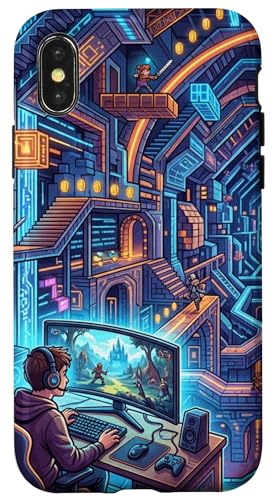 Joueur PC Cyberpunk futuriste et RPG rétro Pixel Art Fantasy Coque pour iPhone X/XS