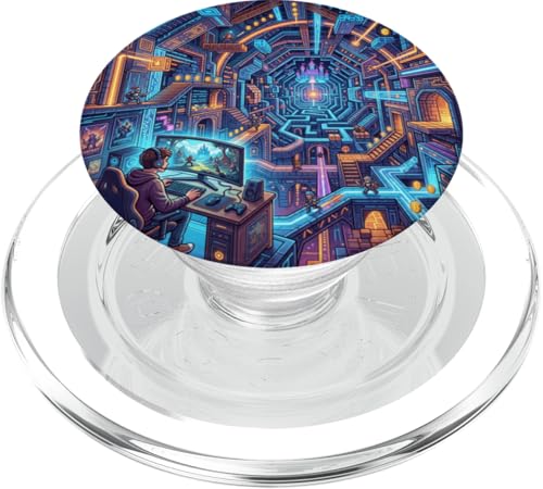 Joueur PC Cyberpunk futuriste et RPG rétro Pixel Art Fantasy PopSockets PopGrip pour MagSafe
