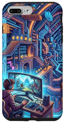 Joueur PC Cyberpunk futuriste et RPG rétro Pixel Art Fantasy Coque pour iPhone 7 Plus/8 Plus
