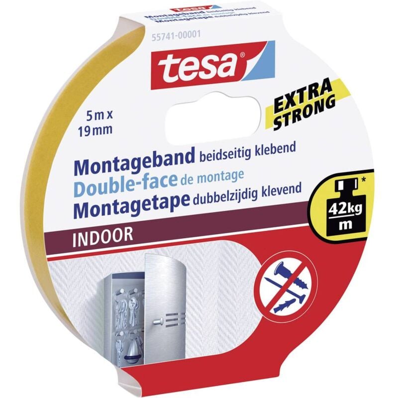 Powerbond indoor - Ruban de montage double face pour usage intérieur - adhésif puissant des deux côtés, pour fixation permanente - 5 m - Tesa