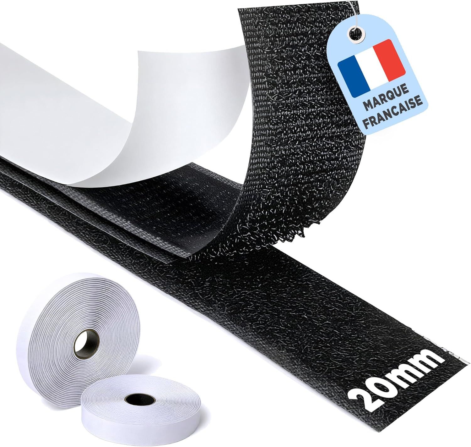 JEXNOVASHOP-Scratch Autocollant Double Face-8Mx20mm-Adhésif Puissant-2 Rouleaux (8M Crochet + 8M Boucle)-Ruban Autocollant tissu-Double Face-Idéal pour moustiquaires, tapis et cadres