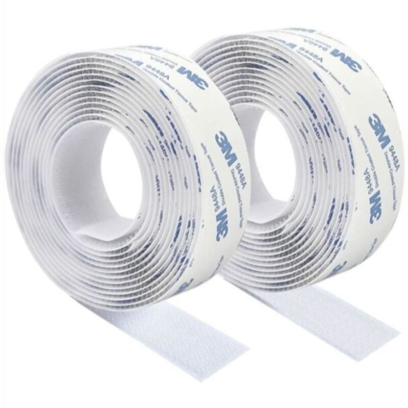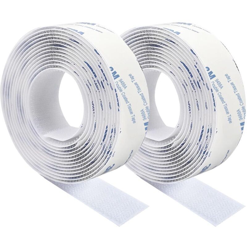 YMYNY 3M Scratch Autocollant Double Face,Ruban Adhésif Double Face Puissant Blanc Nylon Sans Trace Bande Agrippantes Adhésives 3m×2cm Pour Tapis De