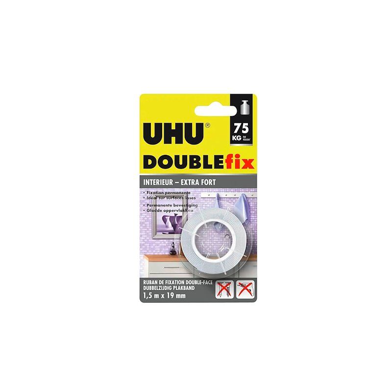 Ruban adhésif double-face Doublefix UHU ultra-fort - largeur 19 mm x Longueur 1,5 m - Résistance 75 kg