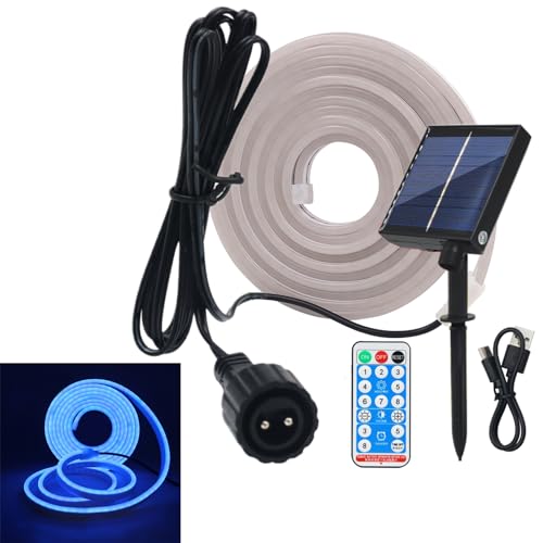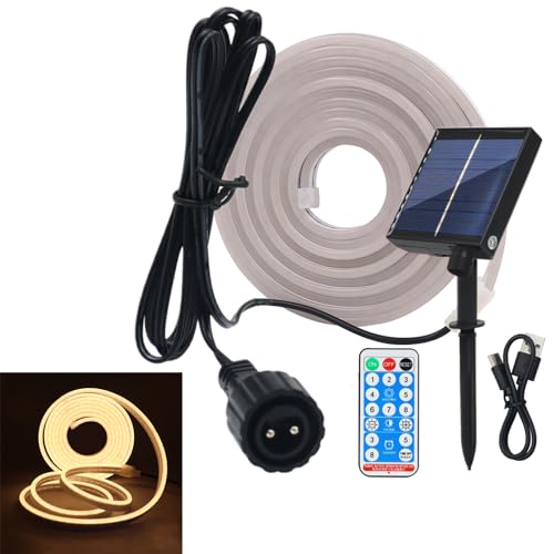 KISUFU Énergie solaire 5V 2835 120 LEDs/M Ruban Led Exterieur Etanche ip67 LED Bande Lumineuse, Flexible Néon LED Bande Avec 1.2w USB plug in Contrôleur solaire pour Décoration de jardin.