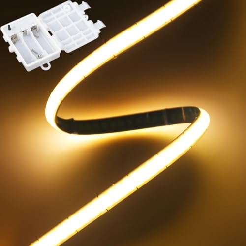 KSIBNW Ruban LED Pile Batterie, 2M Bande LED COB à Piles, Blanc Chaud 3000K 320LED/M Lumineuse 5V Adhésive Bandeau à Alimentation Batterie pour Cuisine Sous Meuble, Chambre, Placard Décoration