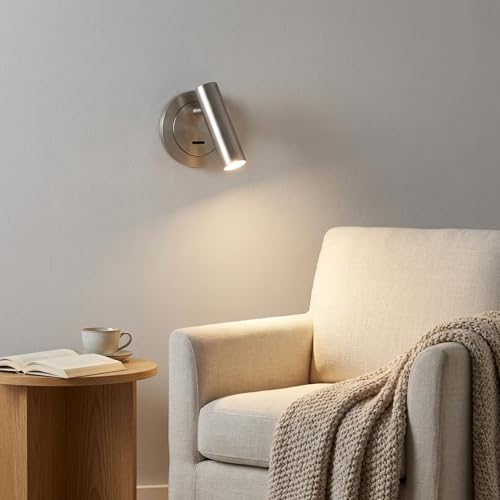 BARCELONA LED Applique Murale LED Nickel Satiné Réglable 3W Lumière Chaude 2700K, Lampe de Lecture pour Chambre Tête de Lit Escalier Restaurant Salle de Bain Style Industriel Vintage Minimaliste