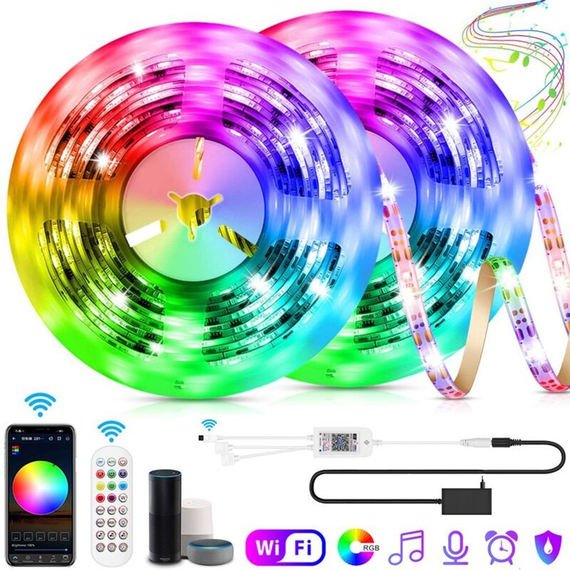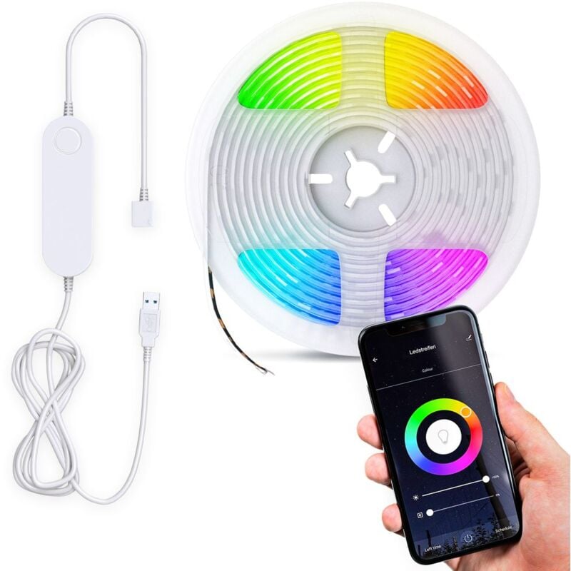 B.K.Licht Ruban LED RGB smart 2m WiFi USB avec contrôle via app et voix auto-adhésif 60 LED lumière colorée pour TV bureau déco gaming