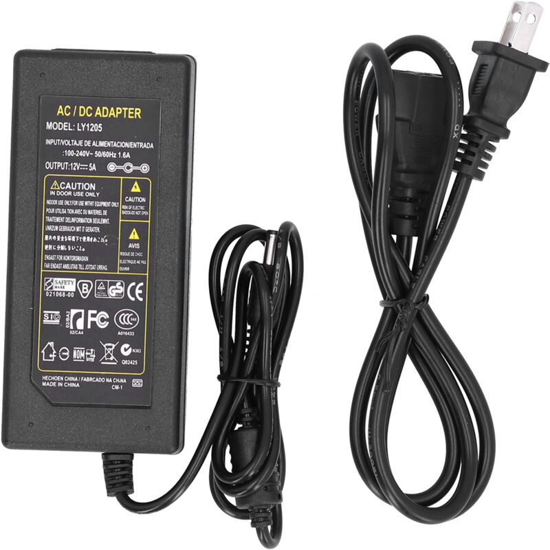 Adaptateur Secteur 5A 100‑240V AC vers 12V DC pour Ruban LED, Caméra, TV avec Fiche US