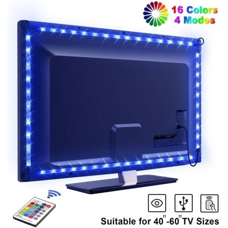 Ruban led tv rétroéclairage Télé connexion avec câble usb bande led multi couleur rgb 2m