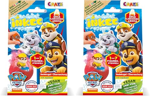 CRAZE INKEE PAT PATROUILLE | Pack de 3 Bombes de bain enfant, 3x Boules de bain avec jouet Pat patrouille à l'intérieur, arôme Cola, tésté dermatologiquement