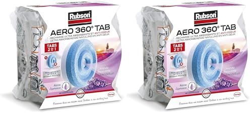 Rubson AERO 360° 1 recharge en tabs parfum lavande relaxante, recharge pour absorbeur d'humidité, ultra absorbante et anti odeurs, recharge pour déshumidificateur, 1 x 450 g (Lot de 2)