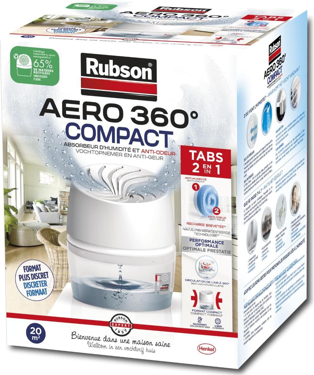 Rubson AERO 360° Absorbeur d'humidité Compact (1 appareil + 1 recharge de 450 g) – Déshumidificateur d'air anti-odeur – Absorbeur anti-humidité & condensation