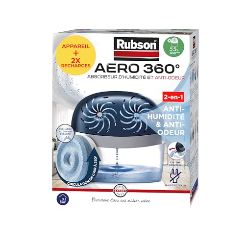 Rubson AERO 360° Absorbeur dhumidité + 2 Recharges pour pièce 20 m² déshumidificateur dair anti odeurs & anti moisissure
