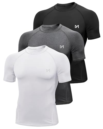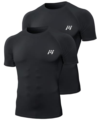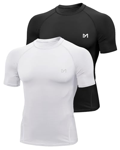 MEETYOO Tee Shirt Compression Homme Manche Court/Longue, Baselayer Maillot Running Vetement Fitness pour Sports Jogging Musculation