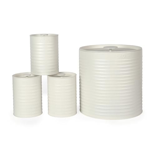 Russell Hobbs RH03270CEU7 Ribbed Ensemble de comptoir de 4 pièces - Ensemble de 3 boîtes de rangement de cuisine et bac à pain, thé, café et sucre, acier durable, facile à nettoyer, crème
