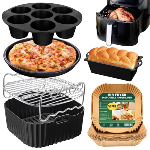 23-25CM Accessoire Air Fryer, Moule Silicone Air Fryer pour Russell Hobbs Air Fryer XXL 8L/8,3L, Moule Air Fryer avec Grille Air Fryer, Grille de Toast, Moule à gâteau