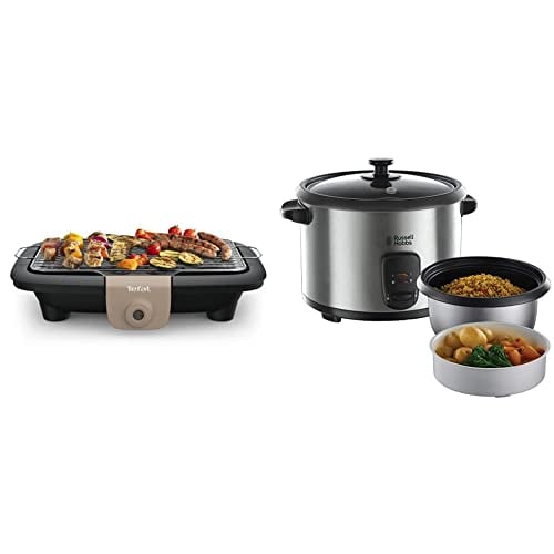 Tefal Barbecue électrique de table, Puissance 2300 W, Grillades Réussies, Grille en inox, Nettoyage Facile & Russell Hobbs Cuiseur Riz 1,8L, Arrêt Automatique, Maintien au Chaud - 19750-56