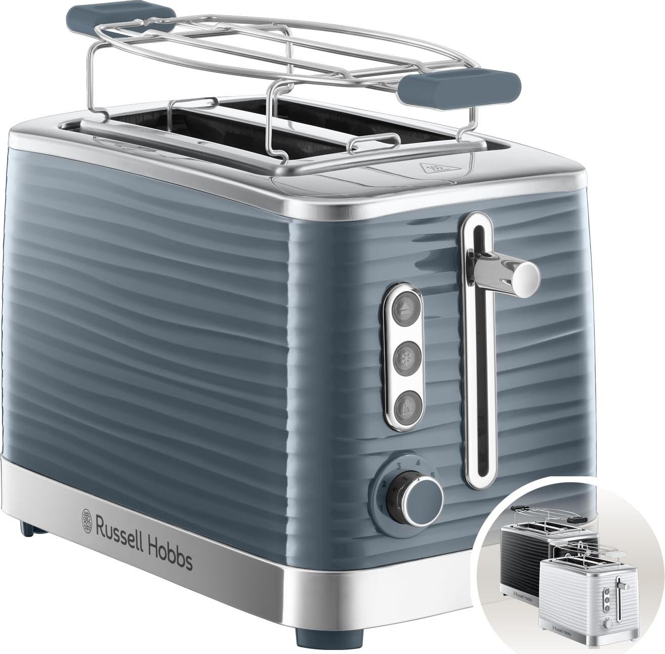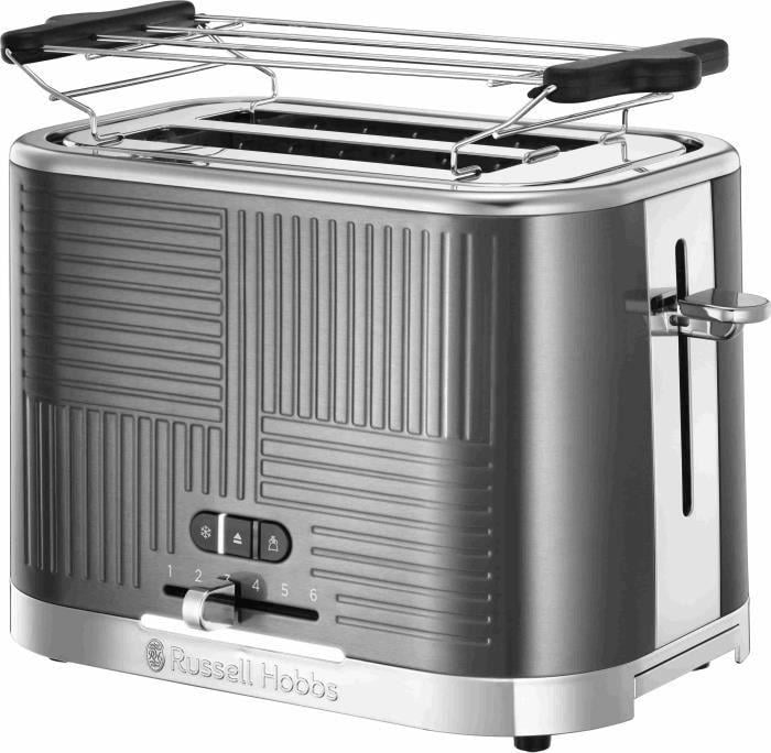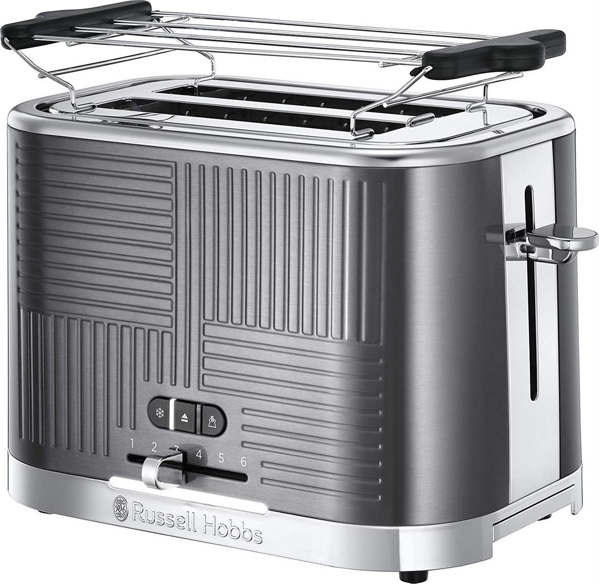 Grille-pain Russell Hobbs [pour 2 tranches] Inspire gris avec structure brillante de haute qualité (fentes pour toasts extra larges, y compris support à petits pains, 6 niveaux de brunissage + fonction décongélation & réchauffage) 24373-56