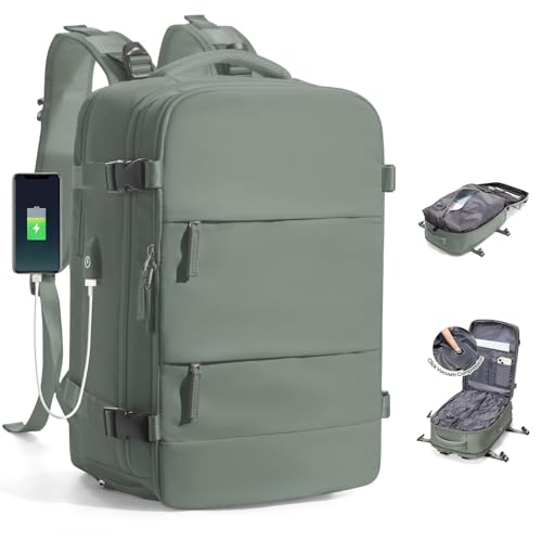 Sac à dos extra large 47 x 33 x 20 cm, convient pour bagage à main Ryanair, valise de voyage unisexe, taille bagage à main de 30 litres, sac à dos avec plusieurs compartiments et poches anti-vol, vert