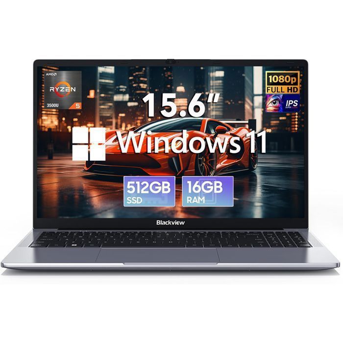 PC Portable 156 FHD AMD Ryzen 5 3500U 16Go RAM 512Go SSD Windows 11 Clavier QWERTY US Fin & Puissant