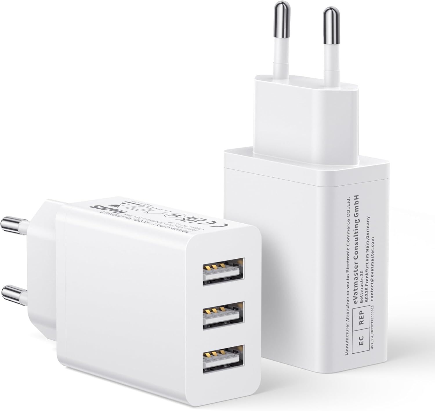Multiple Usb Charger 2 Pack, 3 Port Usb Socket 15w/3a Mains Adapter Charger For Iphone 16/15/14/13/12/11/X/8/7/Se, Samsung Galaxy S25/S24/S23/S22/S21/S20, Xiaomi, Huawei