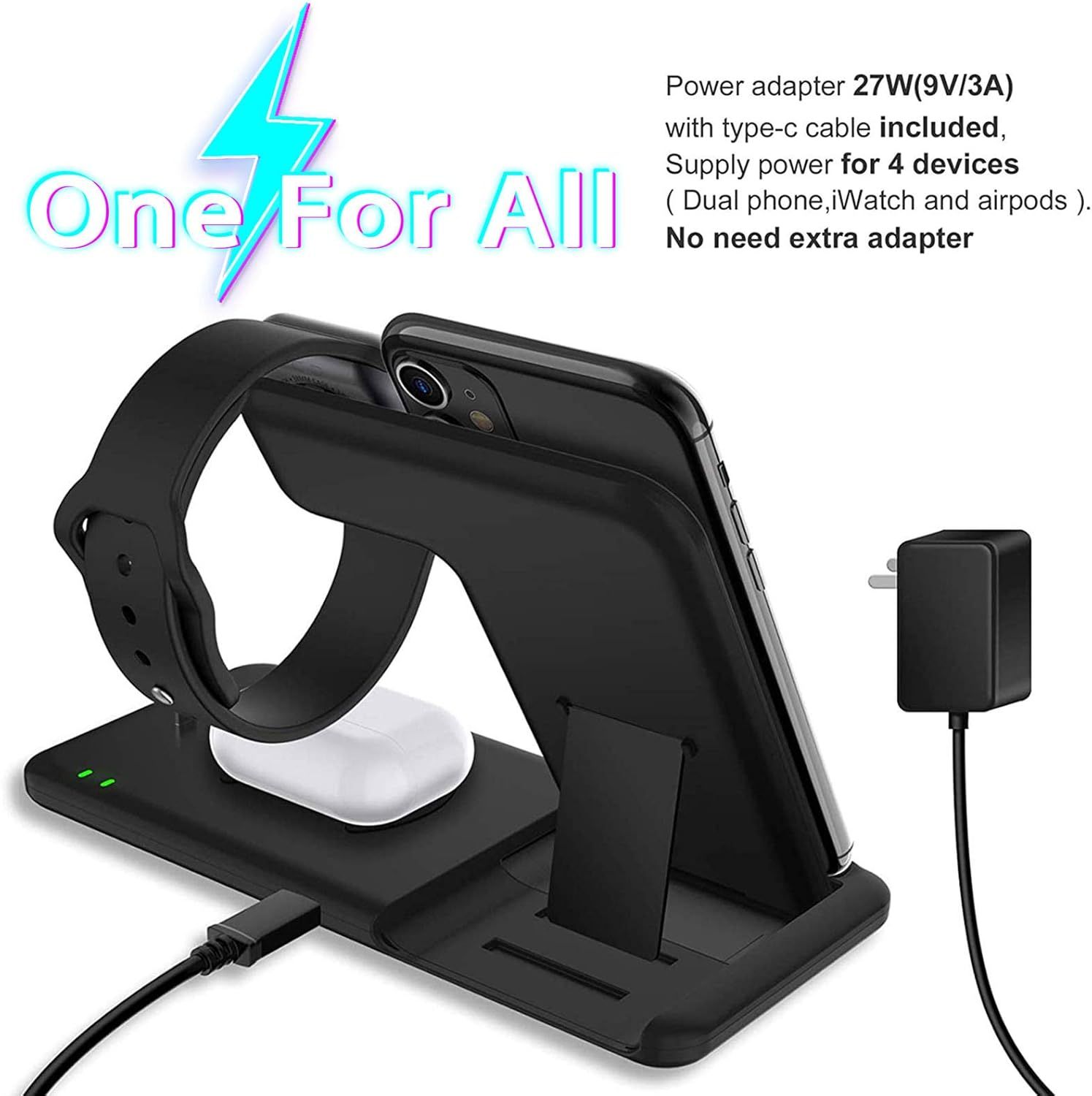 4 En 1 Station De Chargeur Sans Fil Pour Airpods Pro Apple Watch Se/6-1,Support De Station De Chargement Rapide Sans Fil Qi 15W Pliable Compatible Avec Iphone 12/11/Xr/X/Galaxy Note20/S20/Ultra