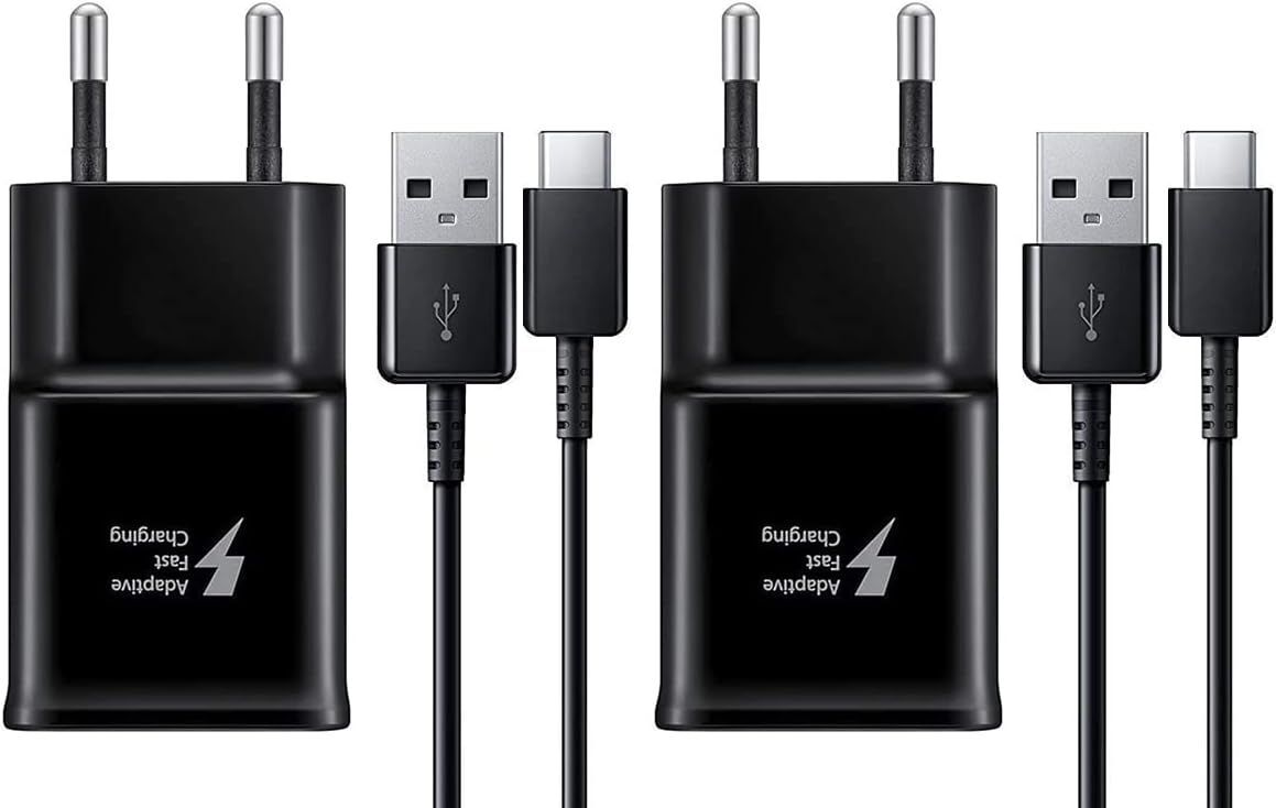 2 Pack Usb Chargeur Avec Câble Compatible Avec Samsung S20 S20 Fe S10 S10 Se S9 S8 A53 A52s A51 A50 A41 A40 Charge Rapide + Type C Câble - Noir