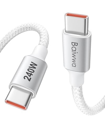 Câble USB C vers USB C 1M, PD 240W USBC USBC Charge Rapide 5A Nylon Tressé Type C Cordon pour iPhone 17/16/15 Pro Max, pour Samsung Galaxy S25 S24 Plus -Blanc