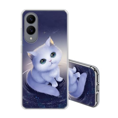 JEZSTHAI Housse Compatible avec Samsung Galaxy S25 Edge Coque Silicone Transparente Souple Gel TPU Étui de Protection Antichoc avec Chat Mignon Motif imprimé