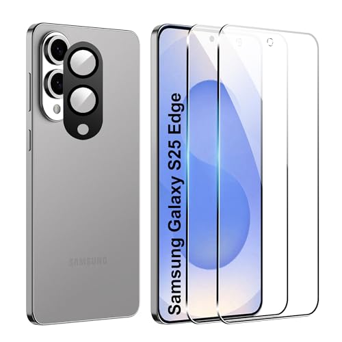 FDHYFGDY 2+1 Pièces Film pour Samsung Galaxy S25 Edge Verre Trempé, Protection de l'appareil Photo et Film de Protection du Verre, Dureté 9H, Protecteur d'écran HD