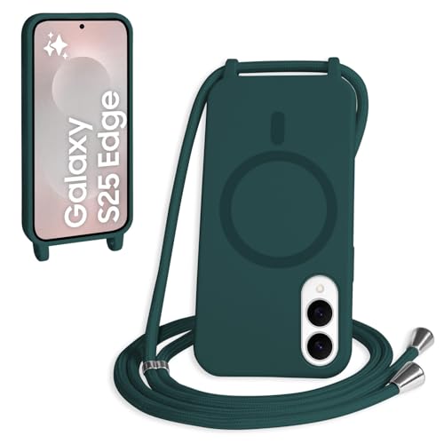 FMPCUON Magnétique Coque avec Cordon pour Samsung Galaxy S25 Edge, [Compatible avec MagSafe] Etui Collier Réglable Téléphone Étui Portable Lanyard Case Protection Complète Cover,Vert