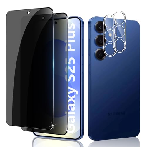 Liilaa Verre Trempé Anti-Espion pour Samsung Galaxy S25 Plus / S25+ 5G, 2 Pièces Protection Écran de Confidentialité et 2 Pièces Protecteur Caméra, Dureté 9H Glass Privacy Film Protection D'écran