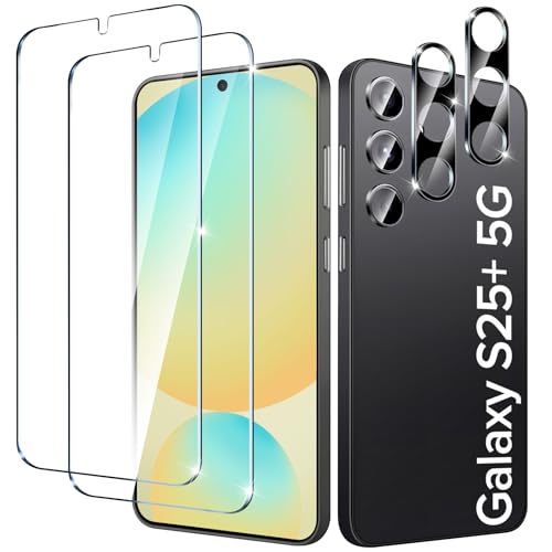 ivoler Pack de 2 Film de Protection d’écran en Verre Trempé pour Samsung Galaxy S25+ 5G / S25 Plus 5G, avec 2 Pièces Caméra Arrière Protecteur, Dureté 9H Glass, Anti Rayures, Sans Bulles