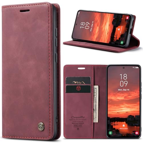 Azororo Coque pour Samsung Galaxy S25 Plus 5G Premium Housse Cuir Protection Pochette Rabat Portefeuille Flip Case Porte Magnétique Coque Étui pour Samsung Galaxy S25 Plus, Vin Rouge