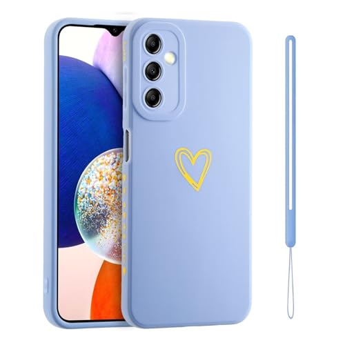 Jeelar ESONG Coque pour Samsung Galaxy S25+ Plus,avec Motif Coeur d'amour Doré Mignon/dragonne,Belle Case pour Femme/Fille,Ultra Fine Housse en Silicone Souple Fantaisie TPU Etui-Bleu