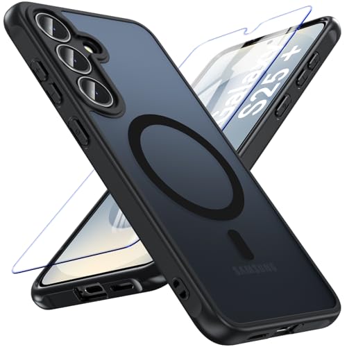 OWKEY Coque Magnétique pour Samsung Galaxy S25 Plus/S25+ 5G, Compatible avec MagSafe,Housse Antichoc Fine avec Verre Trempé , Étui Translucide Mat(Noir)