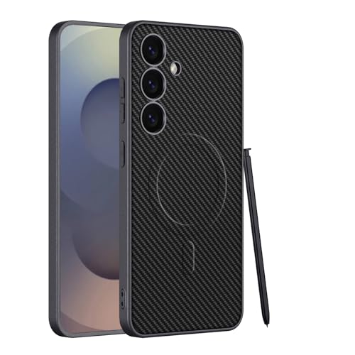 COQUE Étui pour Galaxy S25 Plus, de téléphone à Texture givrée avec Ventouse magnétique, de Protection pour Samsung Galaxy S25 Plus-Motif en Fibre de Carbone