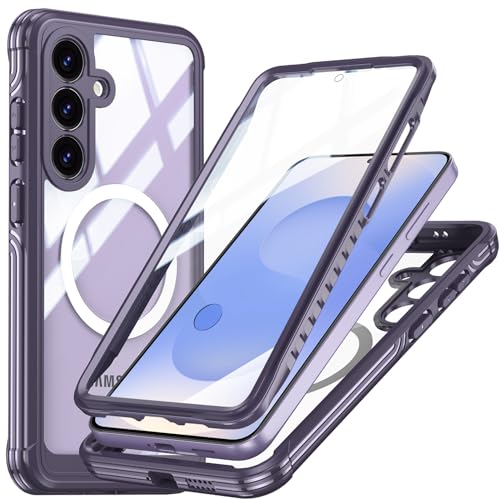 Miimall Magnétique Coque pour Samsung S25+ Compatible avec Mag-Safe, Coque Intégrale Samsung S25 Plus avec Protecteur D'écran, Résistant aux Rayures Anti-poussière Antichoc Étui, Violet